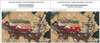 Mit dieser Bekanntmachung tritt die 51. Änderung des Flächennutzungsplanes in Oberkalbach „Am Geisberg“ in Kraft. Jedermann kann die Änderung des Flächennutzungsplan und seine Begründung nebst Umweltbericht sowie die zusammenfassende Erklärung über die Art und Weise, wie die Umweltbelange und die Ergebnisse der Öffentlichkeits- und Behördenbeteiligung in dem Flächennutzungsplan berücksichtigt wurden und aus welchen Gründen der Plan nach Abwägung mit den geprüften, in Betracht kommenden anderweitigen Planungsmöglichkeiten gewählt wurde, im Rathaus Mittelkalbach, Bau- und Umweltamt, Zimmer: 205, Hauptstraße 12, 36148 Kalbach während der Dienststunden: Mo. – Fr. 8:00 Uhr bis 12:30 Uhr, Mo. & Do.14:00 Uhr bis 16:00 Uhr und Mi. 14:00 Uhr bis 18:00 Uhr einsehen und über deren Inhalt Auskunft verlangen.