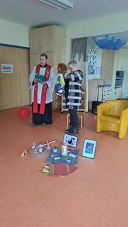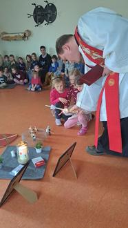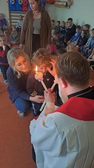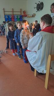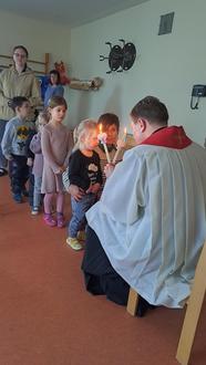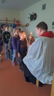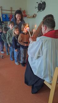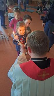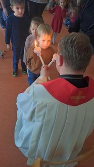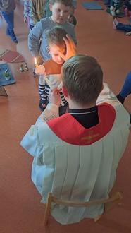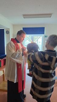 Am Dienstag, den 04.02.2025 empfingen die Kitakinder der katholischen Kindertagesstätte St. Sebastian den Blasiussegen durch Kaplan Philipp Schöppner. Begleitet von Lolita Fey und Kilian wurden allerhand spannenden Geschichten des heiligen Blasius erzählt. Das Lied "Er hält die ganze Welt in seiner Hand", sowie das "Vater unser" rundeten die Feier ab. Der Segen, bei dem jedes einzelne Kind vortreten durfte, schien ein besonderes Highlight für die Kinder. Stolz, aber dennoch vorsichtig traten die Kinder vor den Kaplan und empfingen die Segensworte.