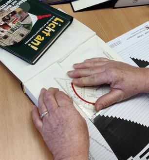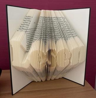 Nach einem kurzen theoretischen Teil können sich die Teilnehmerinnen und Teilnehmer entweder ein Motiv oder ein Wort mit bis zu fünf Buchstaben aussuchen. Dann wird für das mitgebrachte Buch eine entsprechende Druckvorlage erstellt und im Anschluss geht es mit dem Falten los.