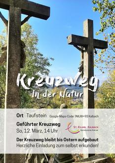 Wir laden Sie ein am Sonntag, 12.03.2023, 14.00 Uhr, Treffpunkt Parkplatz Gaststätte am Taufstein den Kreuzweg erstmals gemeinsam im Gebet zu begehen. Im Anschluss ist eine Kaffeeeinkehr im Gasthaus Taufstein möglich.