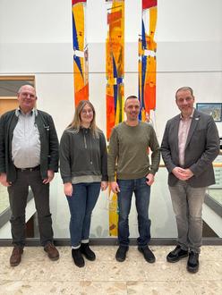 v.l.: Bauamtsleiter Oliver Kottik, Personalrätin Michelle Gerres, Patrick Aha und Bürgermeister Mark Bagus
