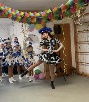 Ein ganz besonderes Highlight war der Besuch des Niederkalbacher Carneval Verein. Mit schwungvollen Tänzen begeisterten die Tänzerinnen unsere kleinen und großen Zuschauer. Natürlich durften auch das Prinzenpaar nicht fehlen: Gemeinsam mit Prinz Markus LXXIV. von FFW und Hobelspä` und Prinzessin Dunja LXXIV., die strahlende Cabriofahrerin vom Fuße des Kalibergs wurde geklatscht und fröhlich mitgetanzt.