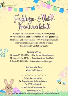 In den Osterferien ist wieder einiges los. Das neue Ferienprogramm steht fest und wir freuen uns auf viele schöne Aktionen und gemeinsame Erlebnisse mit den Kindern und Teenies.