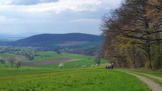 Durch Felder, Wiesen und Wald, vorbei an Obstbaumbeständen und Hecken entdeckt man gemeinsam mit Naturparkführerin Maritta Ewald die vielfältige Landschaft entlang des Fabelweges "Falkenflug". Ausblicke weit ins Land, hinüber zum Homberger Burgberg, in den Knüll oder den Kellerwald lassen einen die Perspektive eines Falken einnehmen. Die Naturparkführerin lenkt den Blick gekonnt auf die großen und kleinen Wunder der Natur entlang des Weges. Die Führung ist empfohlen für Erwachsene.