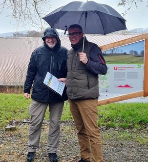 Jochen Becker vom Deutschen Wanderinstitut überreichte die Zertifikate „Premiumweg“ für die Fabelwege im Naturpark Knüll © Jannes Löwer