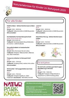 Detailliertere Beschreibungen zu den Veranstaltungen gibt es auf der Internetseite www.naturpark-knuell.de
