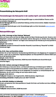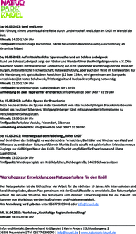 Detailliertere Beschreibungen zu den Veranstaltungen gibt es auf der Internetseite www.naturpark-knuell.de