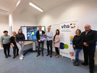 Bildunterschrift: Das Team der vhs Hersfeld-Rotenburg hat ein spannendes Programm erarbeitet. Erster Kreisbeigeordneter Dirk Noll (Vierter von links) und vhs-Leiter Fabian Göbel (Fünfter von links) freuen sich auf das neue Semester.