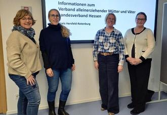 Bildunterschrift: Ulrike Hirschbrich (Beauftragte für Chancengleichheit beim Kommunalen Jobcenter, Melanie Bonacker (Beauftragte für Chancengleichheit bei der Agentur für Arbeit), Corinna Zehender (Frauen- und Gleichstellungsbeauftragte des Landkreises Hersfeld-Rotenburg), Ulrike Peschelt-Elflein (Verband alleinerziehender Mütter und Väter e.V.) (von links).