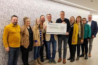 Bildunterschrift: Ein starkes Bündnis für die berufliche Zukunft junger Menschen im Landkreis Hersfeld-Rotenburg: Die Jobcoaches Johannes Sigel, Jasmin Jungermann, Franziska Schaub, Ümit Tetik, Arbeitsagenturchef Waldemar Dombrowski, Erster Kreisbeigeordneter Dirk Noll, Agentur-Berufsberaterin Carola Eidam, Jugendsozialarbeiterin Dr. Andrea Fink-Jacob, Jugendamtsleiterin Anette Kranz und VIA-Geschäftsführer Markus Battenberg bei der Scheckübergabe zur Förderung des Kommunalen Übergangsmanagements Schule-Beruf. Foto: Landkreis Hersfeld-Rotenburg