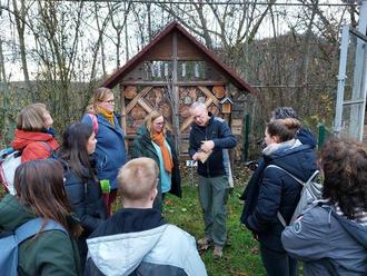 Weitere Nistmöglichkeiten und den Lebensraum der Wildbienen stellte Karl-Heinz-Humburg in der Amphibien- und Reptilienanlage der Modellschule Obersberg vor. Auch das Hintergrundwissen rund um Wildbienen und Insekten im Allgemeinen kam nicht zu kurz.
