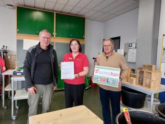 Die Erzieherinnen und Erzieher des Kindergartens Mecklar und der AWO-Kita Altstadt aus Homberg (Efze) haben sich zum Thema Wildbienen weitergebildet. Beides sind zertifizierte „Naturpark-Kitas“. Karl-Heinz Humburg zeigte mit Unterstützung der Imker-AG der Gesamtschule Obersberg in vier Stunden anschaulich, wie man eine Insektennisthilfe baut und gab den Teilnehmenden allerhand Wissenswertes rund um Wildbienen und Insekten im Allgemeinen mit. Unterstützt wurde die Fortbildung durch die Stiftung Gutes Tun der Sparkasse Bad Hersfeld-Rotenburg. Heinrich Eigenbrod, Mitglied des Stiftungskuratoriums übergab eine Spende in Höhe von 500 EUR an Karl-Heinz Humburg, wodurch der Prototyp des Nisthilfebausatzes finanziert werden konnte. Dies soll der Anfang sein für ein "kinderleichtes" Umweltprojekt in Kitas und Schulen - Naturschutz geht doch ganz einfach.