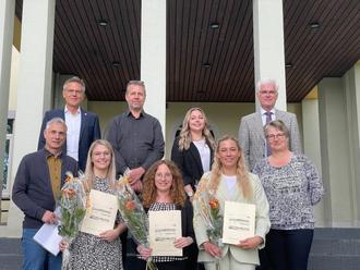 Hersfeld-Rotenburg, 1. Juni 2023 - Bei einer internen Feierstunde haben Landrat Torsten Warnecke und Erster Kreisbeigeordneter Dirk Noll die drei Studien-Absolventinnen Isabell Schmidt, Melanie Kaiser und Anne Koch zu ihren Abschlüssen beglückwünscht. Auch der stellvertretende Personalchef Gunter Ellenberger, Luisa Meinecke von der Jugend- und Auszubildendenvertretung, Ausbildungsleiterin Tanja Licht und Dirk Langheld, stellvertretender Fachdienstleiter Fachdienst Kinder- und Jugendhilfe richteten Glückwünsche an die Absolventinnen.