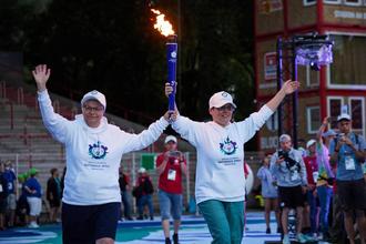 Das Archivbild zeigt zwei Frauen, die gemeinsam am Fackellauf der Nationalen Spielen der Special Olympics im vergangenen Jahr in Berlin teilgenommen haben. (Bildnachweis: Special Olympics World Games 2023/ Anna Spindelndreier)