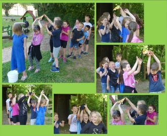 Sportlich in den Sommer ging es auf dem Spielplatz am Wildgehege. Da durften natürlich auch Spiele mit Wasser zum Abkühlen nicht fehlen - aber auch sparsam, denn das wurde uns auch wichtig dabei: mit Wasser muss in dieser Zeit sparsam umgegangen werden!