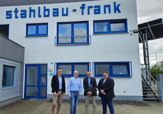 Tobias Krapf, Geschäftsführer von Stahlbau Frank, begrüßte Dirk Noll und seine beiden Mitarbeitenden zum Austausch. Im Vordergrund des Gesprächs standen Schwierigkeiten und Herausforderungen bei der Stellenakquise, der Fachkräftemangel und die Zusammenarbeit zwischen Unternehmen und Arbeitgeberservice.