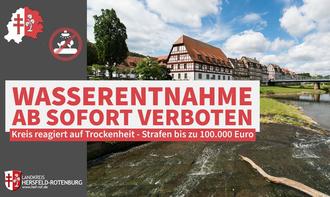 Der Landkreis Hersfeld-Rotenburg untersagt wegen der anhaltenden Trockenheit und der fehlenden Niederschläge ab sofort die Wasserentnahme aus allen Flüssen, Bächen und Seen. Bei Verstößen drohen hohe Bußgelder.
