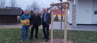 Philippsthal, 8. Januar 2026 - Kurz vor dem Jahreswechsel hatte Landrat Torsten Warnecke zum 325-jährigen Dorfjubiläum vom Philippsthaler Ortsteil Gethsemane ein ganz besonderes Präsent für das 220-Einwohner-Dorf mit dabei. Ein Kugeltrompetenbaum soll zukünftig den Bewohnern ein schattiges Plätzchen bieten. Über die Übergabe des Baumes und das Einpflanzen zeigte sich die engagierte Dorfgemeinschaft erfreut.