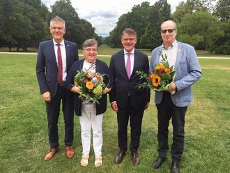 Der Erste Kreisbeigeordnete und Sozialdezernent des Landkreises Hersfeld-Rotenburg Dirk Noll und der Erste Stadtrat von Bebra Ernst-Olaf Mende gratulierten in Wiesbaden persönlich. „Über den Pflegezeitraum von über 12 Jahren hinweg hat Gudrun Roppel ihr eigenes Leben fast völlig in den Hintergrund gestellt und auf viele private Aktivitäten verzichtet, um ihrer Schwiegermutter den Verbleib im gemeinsam bewohnten Haus zu ermöglichen“, sagte Noll und ergänzte: „Mit großem Engagement opfern Sie Ihre Kraft und Zeit über jedes zumutbare Maß für die unentgeltliche häusliche Pflege und Betreuung. Diese außergewöhnliche Hingabe verdient höchste Anerkennung.“