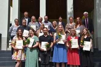 Landrat Torsten Warnecke und Erster Kreisbeigeordneter Dirk Noll ehren 14 Absolventinnen und Absolventen