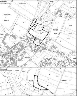 Der räumliche Geltungsbereich des Bebauungsplanes umfasst in der Gemarkung Kirchheim, Flur 28, die Flurstücke 65/1 teilweise, 65/4 teilweise, 65/6 teilweise, 77 teilweise, 79, 80 und 83 (Plankarte 1). Der Bebauungsplan umfasst darüber hinaus in der Gemarkung Heddersdorf, Flur 1, das Flurstück 106/17, das der Planung als externe Ausgleichsfläche für den erforderlichen biotopschutzrechtlichen Ausgleich zugeordnet wird (Plankarte 2). Die Lage des Plangebietes sowie die Abgrenzung des räumlichen Geltungsbereiches können den nachfolgenden Übersichtskarten entnommen werden.