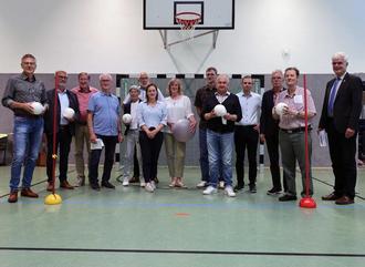 Mitglieder des Kreisausschusses besichtigten gemeinsam mit Landrat Torsten Warnecke die sanierte Turnhalle in Unterhaun.