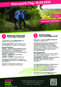 Detailliertere Beschreibungen zu den Veranstaltungen gibt es auf der Internetseite www.naturpark-knuell.de