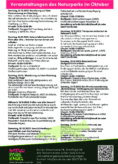 Detailliertere Beschreibungen zu den Veranstaltungen gibt es auf der Internetseite www.naturpark-knuell.de