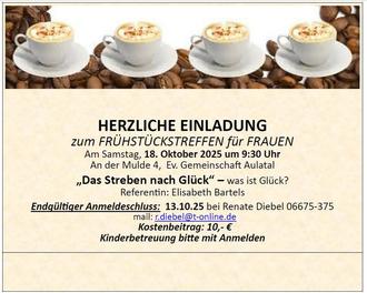 Frühstückstreffen für Frauen am 18. Oktober um 9.30 Uhr