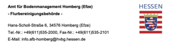 | Gegen diese vorläufige Besitzeinweisung kann innerhalb eines Monats nach seiner Bekanntgabe Widerspruch erhoben werden beim Amt für Bodenmanagement Homberg (Efze) - Flurbereinigungsbehörde -, Hans-Scholl-Straße 6, 34576 Homberg (Efze) oder beim Hessischen Landesamt für Bodenmanagement und Geoinformation - Obere Flurbereinigungsbehörde -, Schaperstraße 16, 65195 Wiesbaden. Der Widerspruch kann schriftlich oder zur Niederschrift erhoben werden. Der Lauf der Widerspruchsfrist beginnt mit dem ersten Tag der öffentlichen Bekanntmachung. |