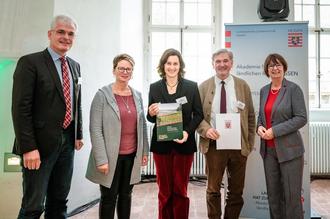 Bereits im November wurde der Ankerkennungsbescheid als LEADER-Region von Umweltministerin Priska Hinz (rechts) übergeben. (v.l.n.r.) Landrat des Landkreises Hersfeld-Rotenburg Torsten Warnecke, Kerstin Knoch und Katrin Anders (Zweckverband Knüllgebiet), Walter Glänzer, Vorsitzender des Vereins zur Regionalentwicklung im Knüllgebiet e.V. © ALR, Foto: Katrina Friese