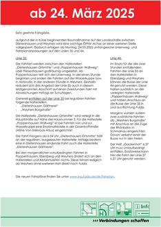 Fahrplananpassung - Sperrung zwischen Dietershausen und Weyhers