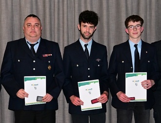 Für ihr langjähriges Engagement in der Jugendfeuerwehr wurden Jugendwart Kilian Vogler, die stellv. Jugendwartin Lena Schneider (beide JF Dietershausen) und Jugendwart Marcel Schweding (JF Künzell-Bachrain) mit der Floriansmedaille der Hessischen Jugendfeuerwehr in Bronze ausgezeichnet.