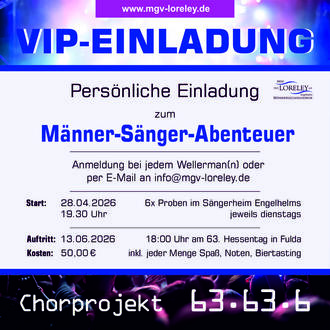 Konkret bedeutet das: 63 Männer singen beim 63. Hessentag 6 legendäre Rock- und Popsongs – kraftvoll, mitreißend und garantiert mitsingtauglich. Das Publikum ist ausdrücklich eingeladen, mitzusingen, mitzuklatschen und mitzugrooven.