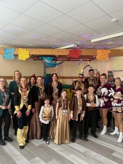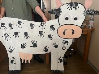 Ein weiteres Highlight war der Auftritt der Bachrainer Traumtänzer, bei dem ebenfalls einige Schneckenhauskinder mitwirkten. Unter dem Motto „Bauernhof" gestalteten die Kinder ein abwechslungsreiches Programm: Sie präsentierten ein Lied über „Bauer Hügel" und führten einen fröhlichen Tanz mit der Kuh Karatscha auf. Zum Abschluss wurde dem Prinzen eine liebevoll gestaltete Kuh überreicht, die gemeinsam von Kindern und Team gebastelt worden war.