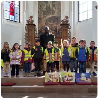 Mit dem Aschermittwoch begann anschließend eine ruhigere, besinnliche Zeit. Wenn Pfarrer Dr. Innocent Oyibo die Einrichtung besucht, ist dies weit mehr als eine Katechese: Gemeinsam „packen" wir symbolisch die Fastnacht in den Koffer und läuten die Fastenzeit ein. In diesem Jahr fiel der Beginn der Fastenzeit mit dem Start des Ramadan zusammen, sodass wir diesen besonderen Moment auch gemeinsam mit unseren muslimischen Kindern begehen konnten. Das Fasten als Zeit der Besinnung, Reinigung und Dankbarkeit verbindet viele Religionen.