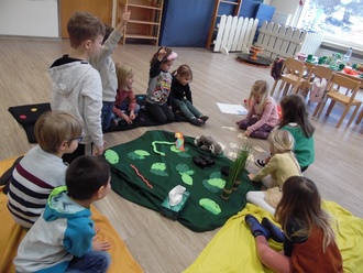 Innerhalb von zwei Monaten konnten wir durch Bastelaktionen, Gesprächsrunden, Bewegungseinheiten, Traumreisen, Meditationen und Buchbetrachtungen vieles über das Faultier und seine Lebensweise lernen, um die Gelassenheit und innere Ruhe zulassen zu können. Passend zum Projektthema gab es eine Projektwand mit großem Dschungelplakat, welches das Faultier auf seiner langen Reise durch den Dschungel zeigt. Es gab insgesamt 8 Stationen, die die Kinder erleben und ausprobieren durften. Ihrer Fantasie und Kreativität waren keine Grenzen gesetzt. Durch verschiedene Methoden konnten die Kinder zu Ruhe kommen und neue Energie für den Kindergartenalltag tanken. Ziel des Projekts war es, den Kindern zu zeigen, dass es gar nicht schwer ist zur Ruhe zu kommen und es viele verschiedene Übungen gibt, die dazu beitragen und helfen können.