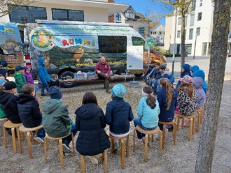Anschließend durften sie einen Blick hinter die Kulissen des Theaterstücks "Der Rabe vom Florenberg" werfen und bei einer Probeaufführung dabei sein. Der Besuch dieses tollen Mitmach-Theaterstücks für Kinder, bei dem Peter-Michael Auth und Andreas Garmisch in verschiedene Mensch- und Tierrollen schlüpfen, ist unbedingt zu empfehlen. Am So., 12.05.24, gibt es noch freie Plätze (Karten über kulturzeitraum.florenberg@gmail.com). Nach dem Besuch des Spielplatzes am Florenberg und einer kleinen Stärkung ging es dann wieder zu Fuß zurück zum Treffpunkt Mitte.