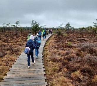 Bei herbstlichen Temperaturen erkundeten die Kinder am ersten Tag der Ferienaktivwoche bei einer Führung durch einen zertifizierten Landschaftsführer auf dem Bohlensteg das Schwarze Moor. Hier gab es kindgerechte Erläuterungen zur Entstehung des Moores und zum Unterschied zwischen Hoch - und Niedermoor. Besonders spannend fanden die Kinder die Erzählungen zu Moorleichen und die Tipps, wie man sich am besten aus einem Moor befreien kann. In Erinnerung bleibt bei den Kindern sicherlich auch die Beschreibung einer Pflanze, die zu den Knöterichgewächsen zählt und wegen ihrer aufrecht stehenden Blütenform im Volksmund „Zahnbürste“ genannt wird und der rundblättrige Sonnentau, der sich als fleischfressende Pflanze seine Nährstoffe im kargen Moor aus Insekten holt. Zur Aufwärmung gab es nach der lehrreichen Führung über den 2,5 km langen Steg noch eine leckere Bratwurst.