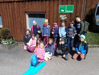 Der Mittwoch stand ganz im Zeichen der Bewegung. Ab Dirlos machten sich die Kinder zu Fuß durch die Aue auf den Weg zum „Rhön Gym“ nach Unterdassen. Auf dem Fußmarsch konnten sie neben Rehen, die den Weg kreuzten, auch ein Storchenpaar in seinem Horst beobachten. In Unterdassen angekommen, wurden sie von Pia Bechthold begrüßt, die bereits einen Trainingsparcours im Hof aufgebaut hatte. Nach einer kurzen Verschnauf- und Trinkpause ging es mit einem Spiel zum Aufwärmen los. Darauf folgte eine Einheit, bei der sich die Kinder wie Tiere fortbewegen mussten. Bei einem Parcours mussten Strohballen überwunden werden, mit einem Tau geschwungen werden, ein Hula-Hoop-Reifen transportiert und ein Autoreifen gerollt werden. Den Kindern machte es riesig Spaß, spielerisch alle Muskelgruppen zu trainieren. Zwischendurch durften auch die Kühe und ein junges Kälbchen gestreichelt werden. Nach einem 2-stündigen abwechslungsreichen Training leitete Pia Bechthold noch ein Cool-down mit Atem- und Dehnübungen an. Auch den Rückweg nach dem intensiven Training zu Fuß nach Dirlos meisterten die Kinder super und dann ging es mit dem Bus zurück nach Künzell.