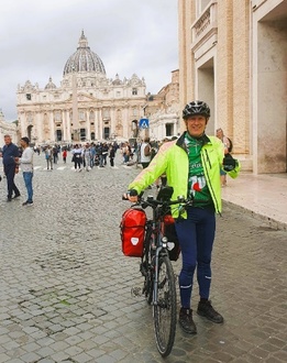 Herausfordernde Passfahrten, schwierige Straßenverhältnisse und Unwetter brachten den 62-jährigen an seine Grenzen und doch endete diese nicht alltägliche Reise mit einem unvergesslichen Gefühl von Glück und Zufriedenheit: der Einfahrt auf den Petersplatz in Rom.