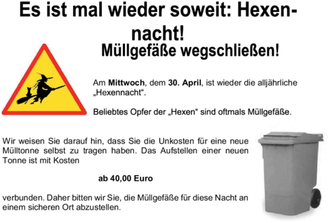 Am Mittwoch, dem 30. April, ist wieder die alljährliche „Hexennacht“.