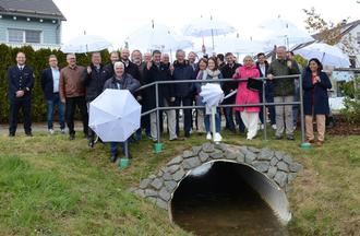 „Das Starkregenfrühalarmsystem ist eine absolut sinnvolle Ergänzung unserer bisherigen Bemühungen. In der Vergangenheit hätte uns diese Einrichtung bestimmt schon gute Dienste erwiesen. Bauliche Maßnahmen wie hier am Grumbach müssen trotzdem umgesetzt oder mobile Schutzeinrichtungen beschafft werden, um vorhandene Eng- bzw. Problemstellen im Bedarfsfalle zu optimieren. Die Angst vor den Folgen aus dem Klimawandel und den damit entstehenden neuen Wetterphänomenen kann durch eine jetzt vorhandene optimierte und zeitnahe Datengrundlage etwas abgemildert werden. Die Möglichkeit des sinnvollen Eigenschutzes wird dadurch ebenfalls erhöht“, erklärte Künzells Bürgermeister Timo Zentgraf.