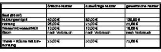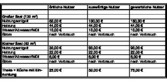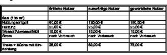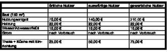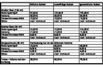 | 8) | Für ortsansässige Vereine wird nur dann ein Nutzungsentgelt für gewerbliche Nutzung berechnet, wenn Veranstaltungen mit Erhebung von Eintrittsgeldern wie ein Gewerbebetrieb nachhaltig und in größerem Umfang durchgeführt werden. In Zweifelsfällen entscheidet der Gemeindevorstand. |