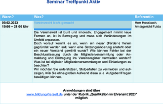 Seminar Treffpunkt Aktiv