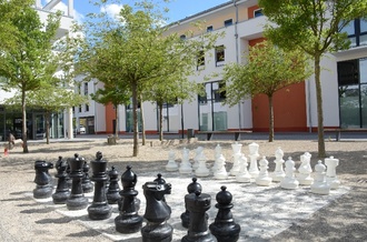 Auf dem Platz „Neue Mitte“ stehen seit letzter Woche die großen Schachfiguren wieder bereit und laden zu einer Partie des beliebten Strategiespiels ein.
