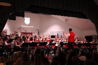 Das Frühlingskonzert des Musikvereins Haunequelle Dietershausen war ein gelungener Abend – das vielfältige musikalische Programm begeisterte den ausverkauften Saal. Das Konzertprogramm des Orchesters unter der Leitung von Jonas Vogel war im ersten Teil geprägt von konzertanten Stücken, im zweiten Teil lag der Fokus auf traditioneller Unterhaltungsmusik. Janika Schubert und Daniela Schneider moderierten als charmantes Tandem den Abend.