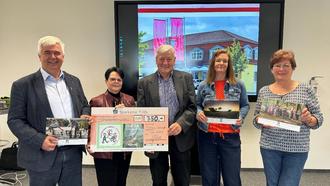 Von links: Bürgermeister Timo Zentgraf und Fotografin Margit Engelbertz. Vom Verein „Gemeinsam leben – Gemeinsam Lernen e.V.“: Toni Kaufmann, Pia Schaffranek und Andrea Reck
