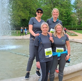 Mitarbeiterinnen vom Kindergarten Zwergenland (Pilgerzell) beim virtuellen Lauf.