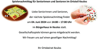 Spielenachmittag für Seniorinnen und Senioren im Ortsteil Keulos